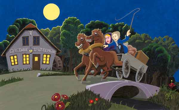 Die Originale der Illustrationen wurden in Acrylfarben auf Karton gemalt.